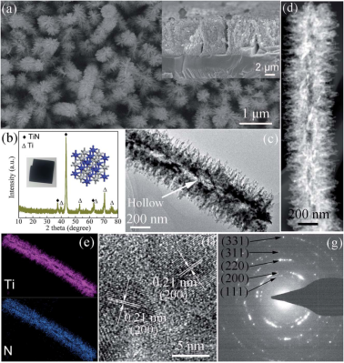 针对这一问题,近期公司文伟教授团队以复杂空心结构氮化钛合金薄膜的构筑为例,提出了“表面诱导”柯肯达尔效应,通过对固态材料的表面修饰,诱导柯肯达尔效应的产生。氮化钛(TiN)是一种金属间化合物型的合金材料,具有高电导率和高硬度的特点。利用“表面诱导”柯肯达尔效应,成功获得了具有空心结构的分级氮化钛3D阵列;用其组装的超级电容器具有“超快”充放电的能力,且具有超长的循环寿命(35万次以上)。相关成果发表于J. Mater. Chem. A期刊(中科院1区,影响因子10.733,论文链接https://pubs.rsc.org/en/content/articlelanding/2019/TA/C9TA07642E#!divAbstract),伟德国际1946为第一完成单位,论文第一作者及通讯作者为文伟教授,2016级硕士研究生姚金呈为第二作者,论文合作者包括浙江大学吴进明教授等。该研究工作得到了国家自然科学基金项目(项目编号51862005、51502065)的资助。