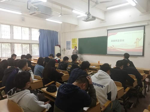 本次会议分为预备党员转正大会、党员发展大会和2018下半年总结大会三个部分。会议由党支部书记施晓佳主持。会议开始之前,施晓佳同志介绍了党支部成员的到场情况和会议内容。