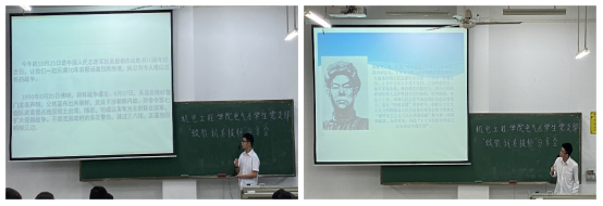 党支部书记章梦琪对本次“抗美援朝“分享会进行总结讲话,要求所有党员、积极分子积极学习红色文化,传承红色精神,并对全体积极分子提出希望,希望积极分子积极向党组织靠拢,增强自身党性修养。