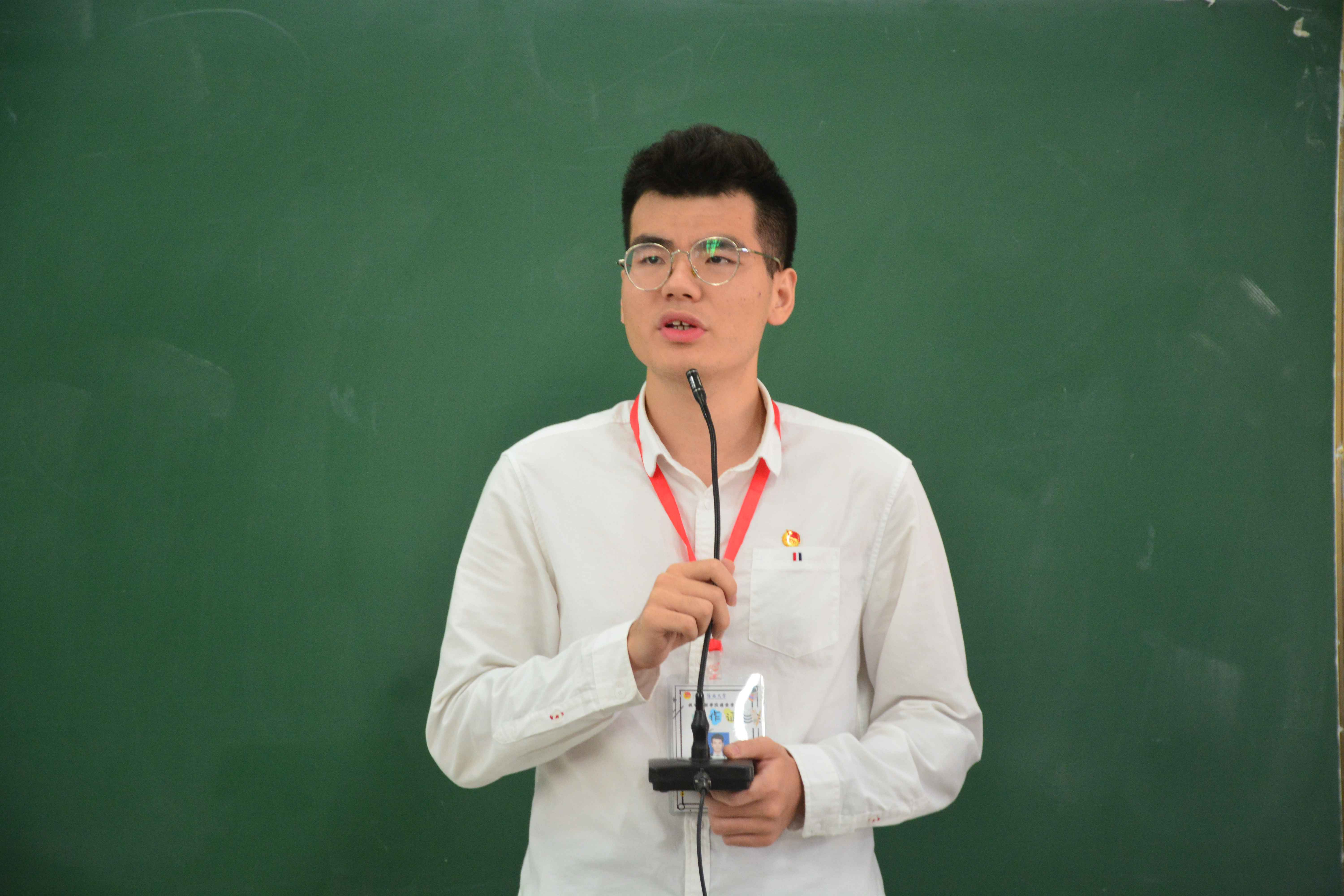 开营仪式第五项,伟德国际1946团委员工会主席谢世晋发言。在大会上,谢世晋同学首先分享了自己的成长故事。他从自己的干事时代回忆起,希望新干事们在学习成长的过程中摒弃浮躁,先学会倾听,经过分析思考后,再去表达自己的观点。通过这种虚心请教的方式,我们才能快速提升自己的能力。他综合自己的干事经历、部长经历、主席经历为19届新干事们提供了很多有价值的思路。