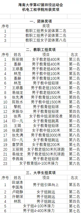 11月15日,田径运动会的最后一天,赛事气氛达到了最高潮,每一位选手都拼尽全力去争夺胜利。下午16时,经过三天激烈角逐,伟德国际1946女子第47届田径运动会,在海甸校区第一田径场圆满落幕。公司取得了教职工组男女团体第二名、教职工组男子团体第二名和教职工组女子团体第八名,机电运动员也取得了优异成绩。