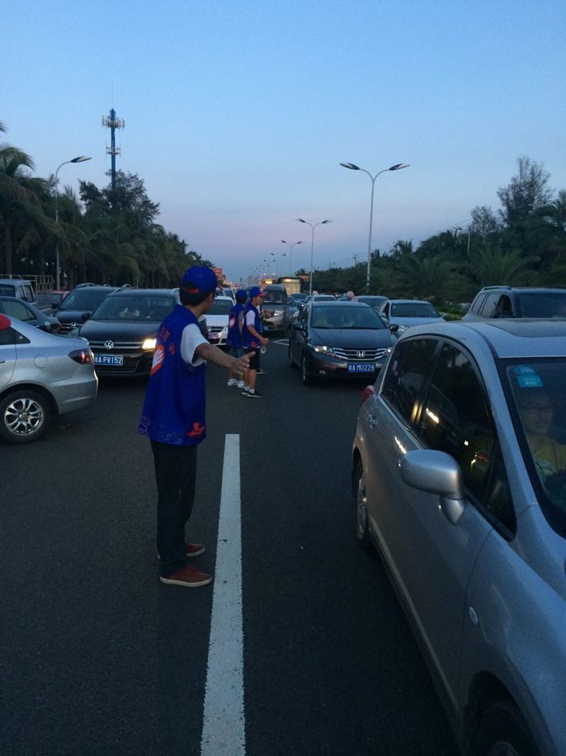 为了倡导文明出行,六一、端午双节期间,伟德国际1946与团海口市委联合组织志愿者在假日海滩沿线开展为期三天的旅游咨询、线路引导、秩序维护、便民互助等服务。