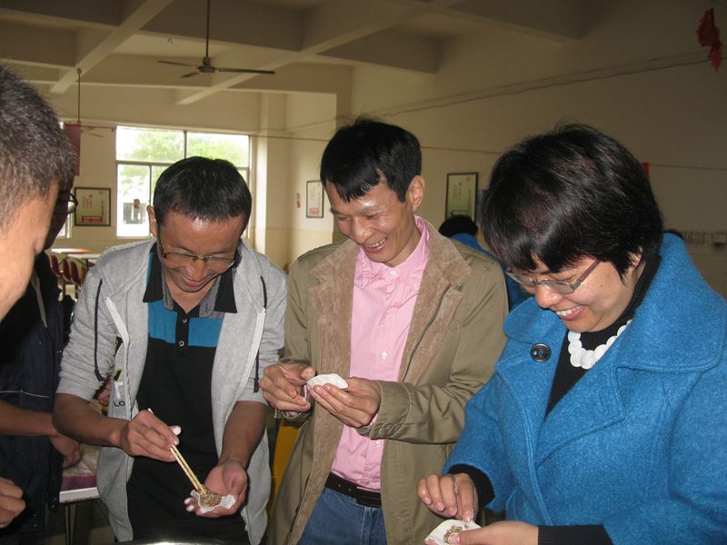 黄国标副书记、陈秀妍主任和员工一起包饺子