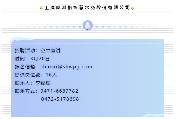 上海威派格智慧水务股份有限公司校园招聘