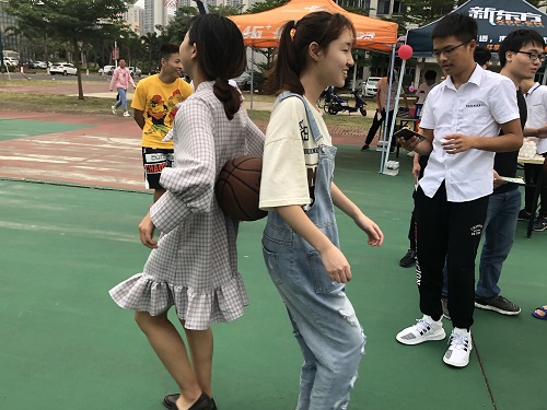 趣味活动正式拉开序幕。本次活动总共设置了七个趣味游戏;萝卜蹲、正话反说、夹乒乓球、吹气球、盲人背瘸子、踩气球、背对背运球等等。在众多的项目中,最难的项目莫过于夹乒乓球,因为只要稍不留神,乒乓球便被风带走了,吹走了球留下来人,而留下的参赛同学只能风中凌乱。而盲人背瘸子的活动也同样给大家带了无尽的欢乐,有人直达终点,也有人偏离轨道,但不变的是那阵阵笑语、欢呼雀跃。活动正如火如荼地进行着,可惜天公不作美,瓢泼大雨仅用几秒就占据了我们的游戏场地,尽管如此,还是有一组同学坚持完成了他们“萝卜蹲”的游戏,最终如愿以偿地拿到了他们的奖励。