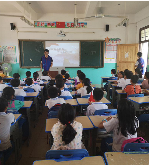 支部成员们在下午14:30从伟德国际1946北门乘坐大巴出发,前往大林小学。海南的四月,虽然天气异常炎热,党员们却热情不减。在课堂上,支部成员们首先通过有奖知识竞答的方式,生动有趣地为同学们介绍了什么是红色精神、五四爱国运动、红色经典与革命精神,随后播放了相关的视频引导同学们一起探讨学习。支部成员们共同表演了以“五四爱国运动”为主题的话剧,再一次带领大家体会这场具有里程碑意义的革命运动中,爱国青年们勇于奉献,不怕流血牺牲的伟大精神!