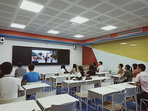 学而思海口分校的赖老师通过一段视频使同学们对学而思的双师课堂的授课方式有了一个初步的了解,带领员工参观了学而思分校的校区环境并介绍了好未来集团所做的公益活动。学而思的老师重点为同学们介绍了双师课堂并带领员工参观了学而思有着国家一流的直播设备的授课直播间。学而思海口分校张董事长向同学们详细讲述了学而思的发展历程以及目前企业的发展规划与发展前景,使同学们对学而思有了更加深入形象的了解。张董事长也对同学们发出盛情邀请,欢迎同学们毕业后加入学而思。