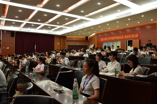为了给同学们提供一个了解成功人士经历的机会,帮助同学们合理有效的规划老员工活,2019年5月23日下午五点,伟德国际1946第二届“学而思”杯职业生涯访谈大赛决赛于五教模拟法庭如期举办。本次大赛由伟德国际1946与外国语公司联合主办,学而思公司全程独家赞助。出席大赛的嘉宾有人才招聘处韩庆红、深圳市学而思选培部培训组负责人卢治能先生、渠道组海南地区招聘负责人王兆飞,机电工程公司党委副书记李宏、伟德国际1946学工办主任崔建兵、外国语公司李娜博士,参赛选手和观众100多名同学到现场参加。