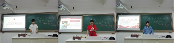 会上,汽车系员工党支部党员彭纳武同志为大家讲解了中国共产党这九十八年来的发展历程以及重大转折。他讲述中国共产党建党、立党的光荣历史,使同学们对中国共产党的光荣历史有了更深刻的了解,更加坚定了同学们今后树立艰苦奋斗精神的决心。汽车系员工党支部党员徐世钰同志为大家讲解中国共产党建党以来的历次重大会议。他从中共一大开始讲起,一直到中共十九大,向大家讲述了中国共产党建党以来的巨大变化。他感叹到,中国共产党由最开始的几十名党员,发展到现在的拥有九千万名党员的大团体,属实体现了中国共产党的先进性和优越性。汽车系员工党支部党员朱亚娟同志为大家讲解党章党纪,她从《中国共产党党员教育管理工作条例》出发,结合上级要求,向大家讲解了身为一名合格的党员应当履行的责任与义务。党员工作条例、党员教育基本任务、党员日常管理方式等一系列管理条例熟记于在场每一位同志的心中。