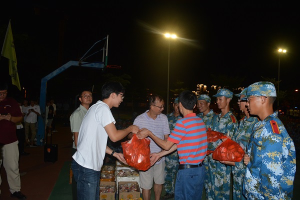 党委书记黄国标书记对奋斗在高温一线的教官表示由衷的感谢,向全体参训新生致以亲切慰问,并对新生军训期间表现优良品质给予高度赞扬。他强调:“作为新时期的老员工,在军训期间,要听从指挥、服从命令、刻苦训练服,发扬军人流血流汗不流泪的精神,为今后老员工涯打下坚实的基础,期待大家能够成为对国家有用的人”。随后,翁绍捷经理、黄国标书记为教官和新生送上了月饼与水果。