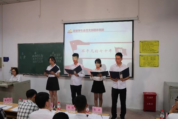 辅导员董赫老师对朗诵进行了点评,他对各位朗诵者与幕后工作人员为比赛的用心筹备表示肯定,并鼓舞在场的各位一同喊出对祖国母亲的爱与祝福,祝愿我们的祖国繁荣昌盛,人民生活幸福平安。