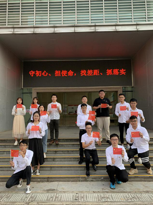 之后,党支部成员前往至行政楼门前国旗处,环绕着国旗站立,大家都抬头注视着国旗,对着国旗行注目礼,鲜艳国旗在风中飘扬,时刻提醒我们这些后人,她是无数先辈用鲜血染成的,激励我们勇敢面对困难,不抛弃,不放弃。