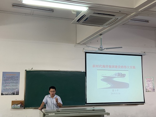 为加强员工的爱国意识,11月16日上午,马克思主义公司温小平副教授应邀在2教111教室为伟德国际1946员工做题为“新时代海洋强国建设的伟大实践”专题讲座。公司党委书记黄国标、19级辅导员章梦琪、致远班和机械系党支部以及党建联席会部长主席团到场聆听此次讲座。