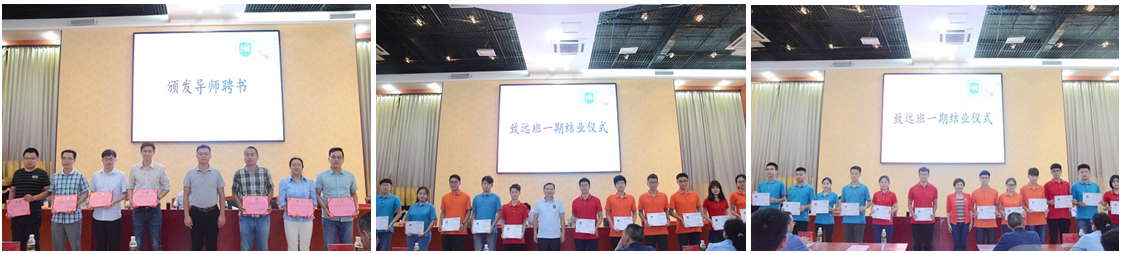 仪式上,谭勇为致远班三期导师颁发了聘任证书。韩力光、俞花美为致远班一期学员颁发结业证书。李宏宣读了致远班一期学员结业文件,陈振斌宣读了致远班三期导师聘任文件。