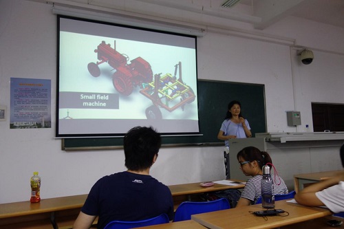 两位教授先后为2015级农机、2017级农机、2015级机电、2015级机械等本科专业员工讲授专业知识。结合国外农业情况,重点讲授土壤耕作机械、保护性耕作技术和国外大型农业机具设计与开发等。通过大量图片和案例教学,使同学们认识到保护性耕作技术的丰富形式以及目前国外保护性耕作的发展现状、国外土壤深松作业的发展方向和国外农业机具发展现状等。结合曼尼托巴大学机械土壤动力学实验室和加拿大大学本科教学模式,两位详细讲述了加拿大保护性耕作技术及其土壤深松技术的主要模式,图文并茂的形式让同学们了解了加拿大机械土壤动力学实验室的基本情况,通过与员工们互动的形式使员工们了解了土壤机械相互运动原理,并重点介绍了加拿大高校本科、硕士、博士培养模式,以亲身经历讲授了如何成为一名合格的国际职工。
