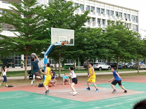 又是一年端午时,情浓粽飘香!为庆祝五月初五端午节的到来,伟德国际1946工会在李运强楼前举行了一场别开生面的教职工篮球友谊赛。机电工程公司党委书记黄国标、党委副书记李宏出席,全院男女教职工近50人参加,行政和电气系组建的黄队与汽车系、机械系组建的蓝队展开了一场激动人心的篮球比赛。