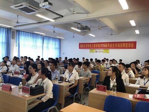 唯才是举,思闲若渴,一片真诚,相遇海大。2018年10月23日下午3:00,2019届毕业生第二场招聘宣讲会在4教114圆满举行。出席宣讲会的有海口链家海南分公司、中铁电气化铁路运营管理有限公司、昌江水务局、一嗨租车、学而思等公司人事负责人、公司团委负责人袁周米琪老师,2019届100余名毕业生以及院员工职业发展中心的工作人员。会议由院员工职业发展中心薛奕昕主持。