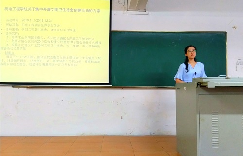 会议开始,袁周米琪老师向全体员工干部介绍《伟德国际1946关于集中开展文明卫生宿舍创建活动的方案》,要求各班级组织同学加强宿舍文明卫生建设,并组织卫生检查活动。接着她又提到了“到梦空间”系统的使用,并给大家介绍该系统的相关情况,要求各团支部做好第二课堂成绩单的相关工作。
