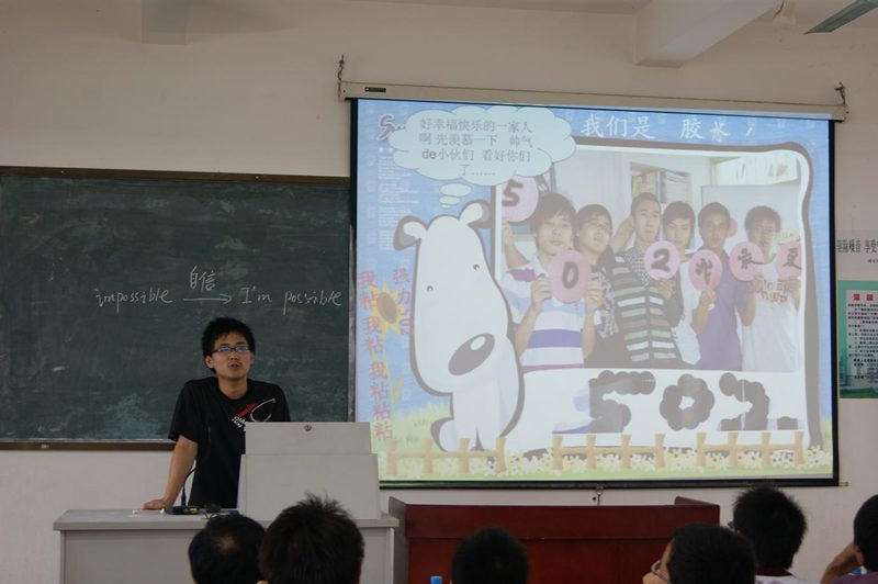 为迎接2011年“525我爱我”老员工心理健康教育活动月,09机械电子工程1班于2011年5月16日下午2:30在3404课室开展了形式多样、内容丰富的心理班会。会上还特邀请了班主任梁栋老师和辅导员崔建兵老师。 本次班会的主题是:“展现自我,拥抱自信”。班会依次分为四个环节:各宿舍展示ppt;“夸夸人”互动游戏;大家讲讲心里话;观看自制的09机械电子工程1班成长录并合唱歌曲。