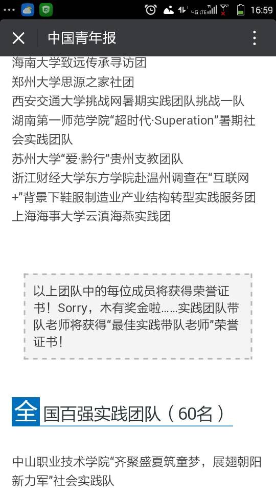 由共青团中央公司部、全国学联秘书处、中国青年报共同主办的“2015寻找全国百强暑期实践团队”获奖情况近日揭晓,公司致远传承寻访团从近1000支团队中脱颖而出,荣获“优秀实践团队”称号(本次活动共评选出100支队伍,其中最佳实践团队10支,优秀实践团队30支,全国百强实践团队60支)。