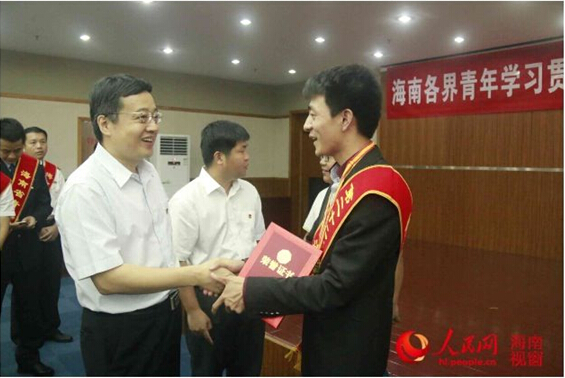 2016年5月4日上午,共青团海南省委在海口举办海南各界青年学习贯彻习近平总书记重要讲话精神暨五四优秀青年表彰座谈会。团省委书记盖文启,副书记曾锋、陈屿,党组成员罗桦以及海南各直属团组织负责人、青年岗位能手代表、青年代表等200余人参加了会议。会议传达学习了习近平总书记在知识分子、劳动模范、青年代表座谈会上的重要讲话精神,并表彰了一批海南省的先进青年集体和个人,其中公司团委获2015年度“海南省五四红旗团委”称号、2012级机械电子工程专业员工王驭陌同学荣获第22届“海南青年五四奖章”称号。