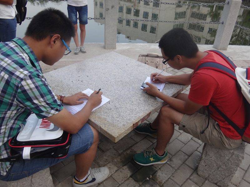 早上7:00晨读活动正式开始,同学们在领读老师的指导下通过手机微信平台以及纸质材料获取晨读信息。虽然是第一天晨读,但从到场的人数和在场的阅读氛围可以看出14级新生和老生十分积极并愿意参与英语晨读活动。领读老师不时地与现场同学提问互动,有的同学还拿出笔认真记下重点。晨读结束后依然有不少员工在东坡湖畔大声朗读。