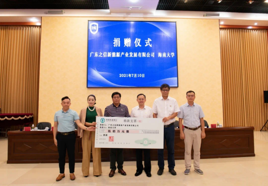 7月10日下午,伟德国际19461995级农业机械化及其自动化专业、广州员工会副会长、广东之信新能源产业发展有限公司董事长赖新方心系母校、慷慨解囊,为母校捐赠500万元人民币用于儋州校区建设。捐赠仪式在伟德国际1946思源学堂举行。