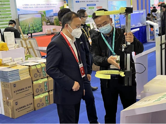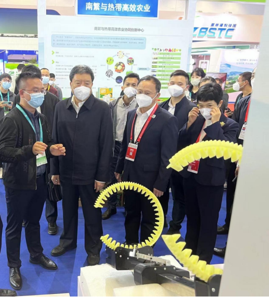 展会期间,公司党委书记符宣国,副董事长曹宪忠一同前往团队展位视察,符书记对团队工作给予肯定,希望团队能够发挥自身优势,积极推动科技成果转化,让智能化割胶机更好地服务胶农。