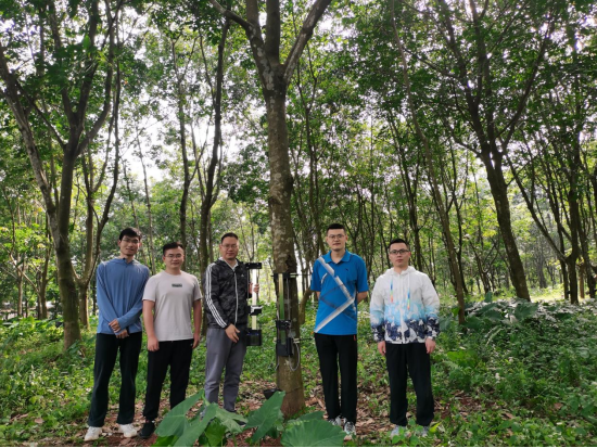 近年来,依托国家天然橡胶现代产业技术体系智能化生产岗位,公司天然橡胶智能化生产团队重点聚焦橡胶产业“胶工荒”的问题,突破了螺旋仿形进阶割胶技术,创新研制出五代“一机一树”式智能割胶机,均已通过胶林试验,实现了割胶深度为1.2 ~ 2.5 mm、耗皮厚度为1.1 ~ 1.8 mm范围内的毫米级精确割胶,下一步团队将进一步优化智能割胶机参数,加快产品推广。