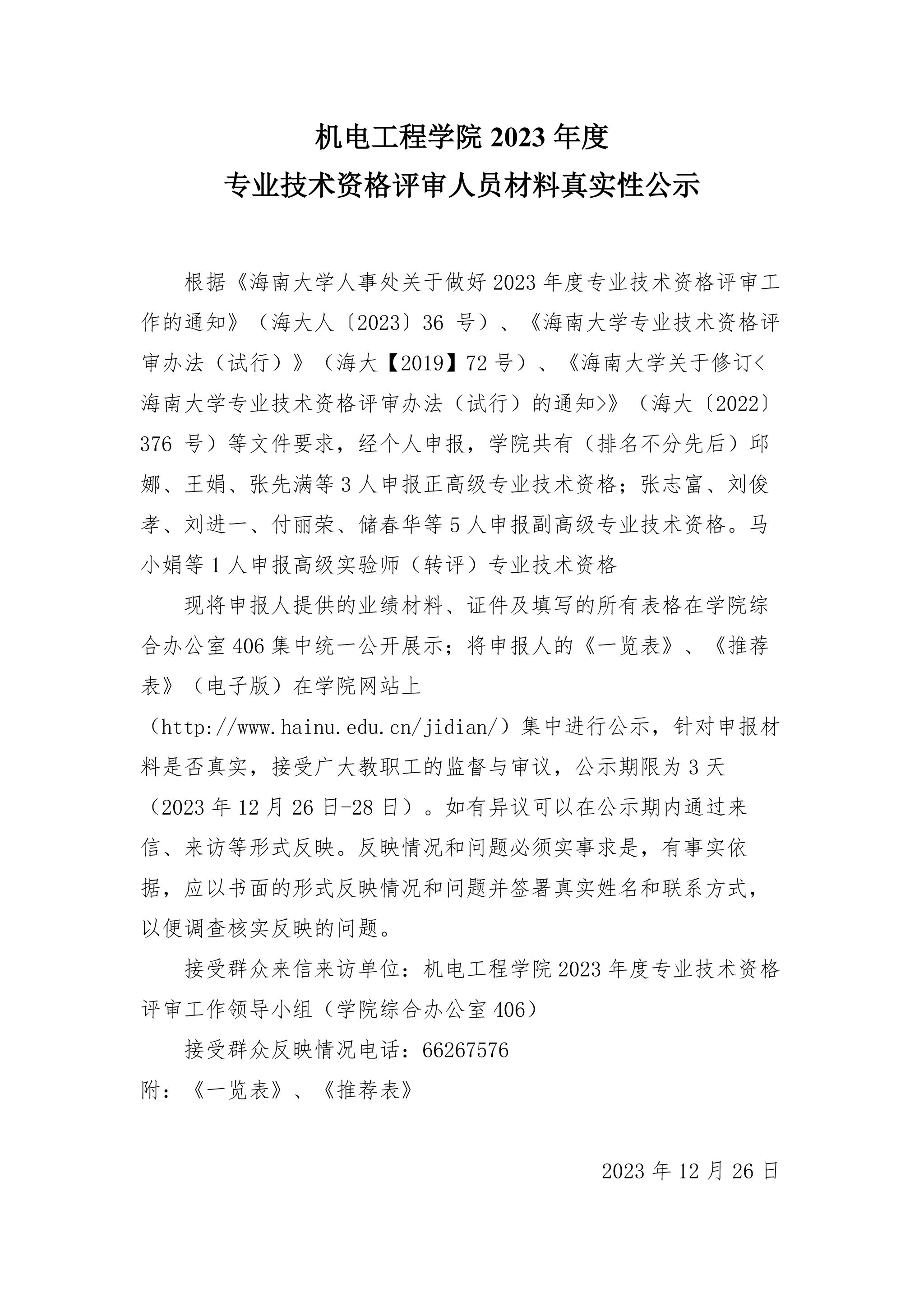 附件2:2023度年专业技术资格评审人员材料真实性公示.zip
