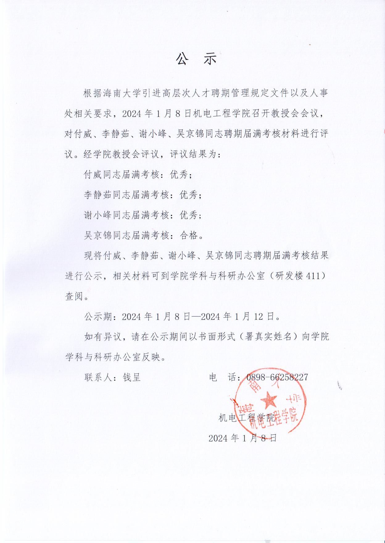 聘期届满考核公示